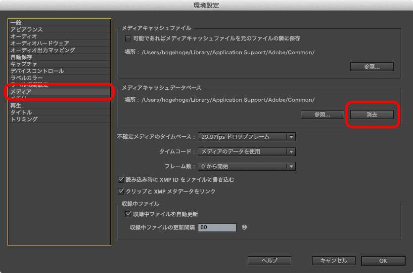各映像プロジェクトごとのキャッシュファイルを消去するには、Premiere PROやAfter Effectsの環境設定から、それぞれについて削除できます。